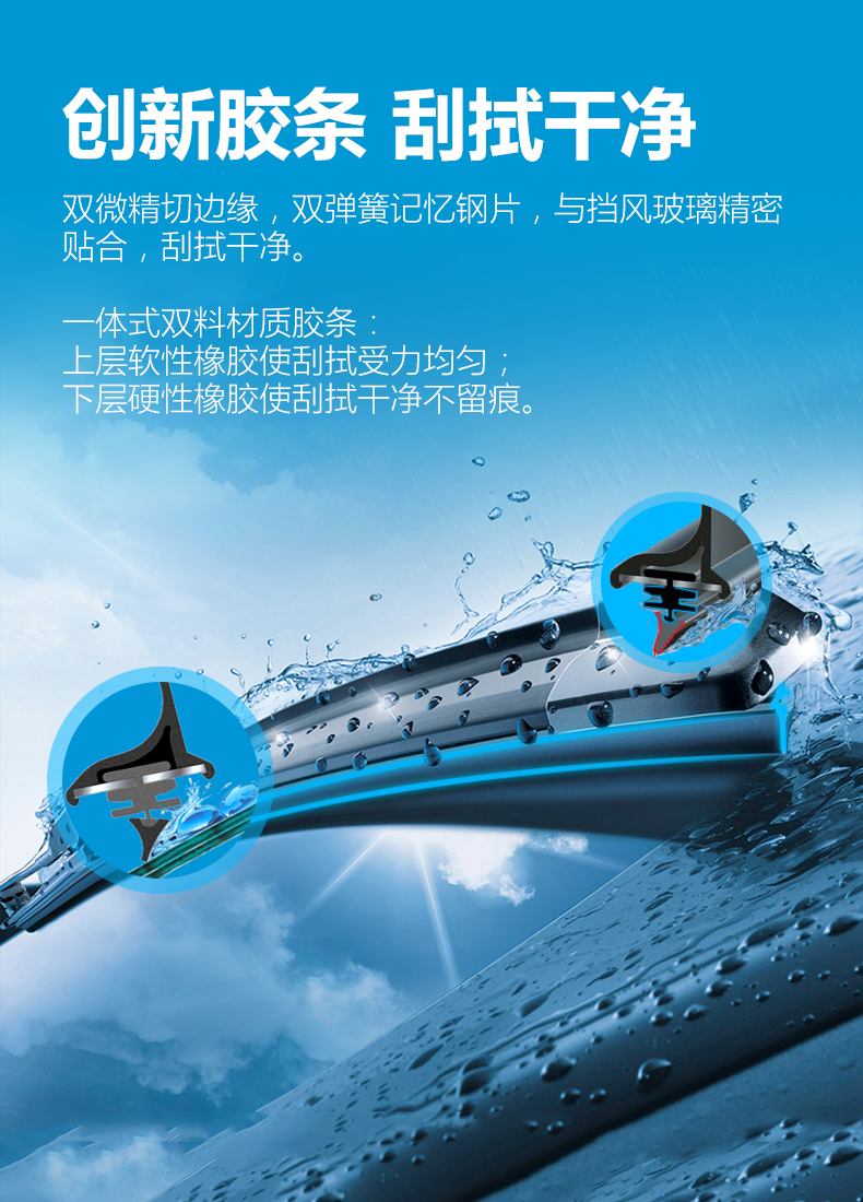 水弹雨刮杰净兄弟静音进口雨弹无骨硅胶镀膜雨刷器片胶条