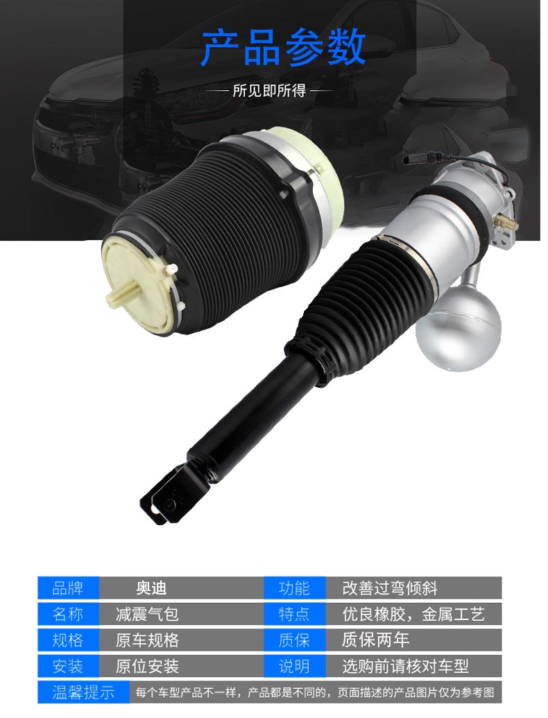 颜色分类: A8前减震 A8后减震 途锐/卡宴/Q7前减震 途锐/卡宴/Q7后减震 宾利前减震 宾利后减震 A6前减震 A6后减震 A7前减震 A7后减震 A6/A7后气包 全系分配阀 打气泵 R8减震